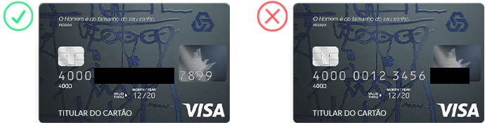 - apenas os 4 primeiros e os 4 últimos dígitos deverão estar visíveis;
